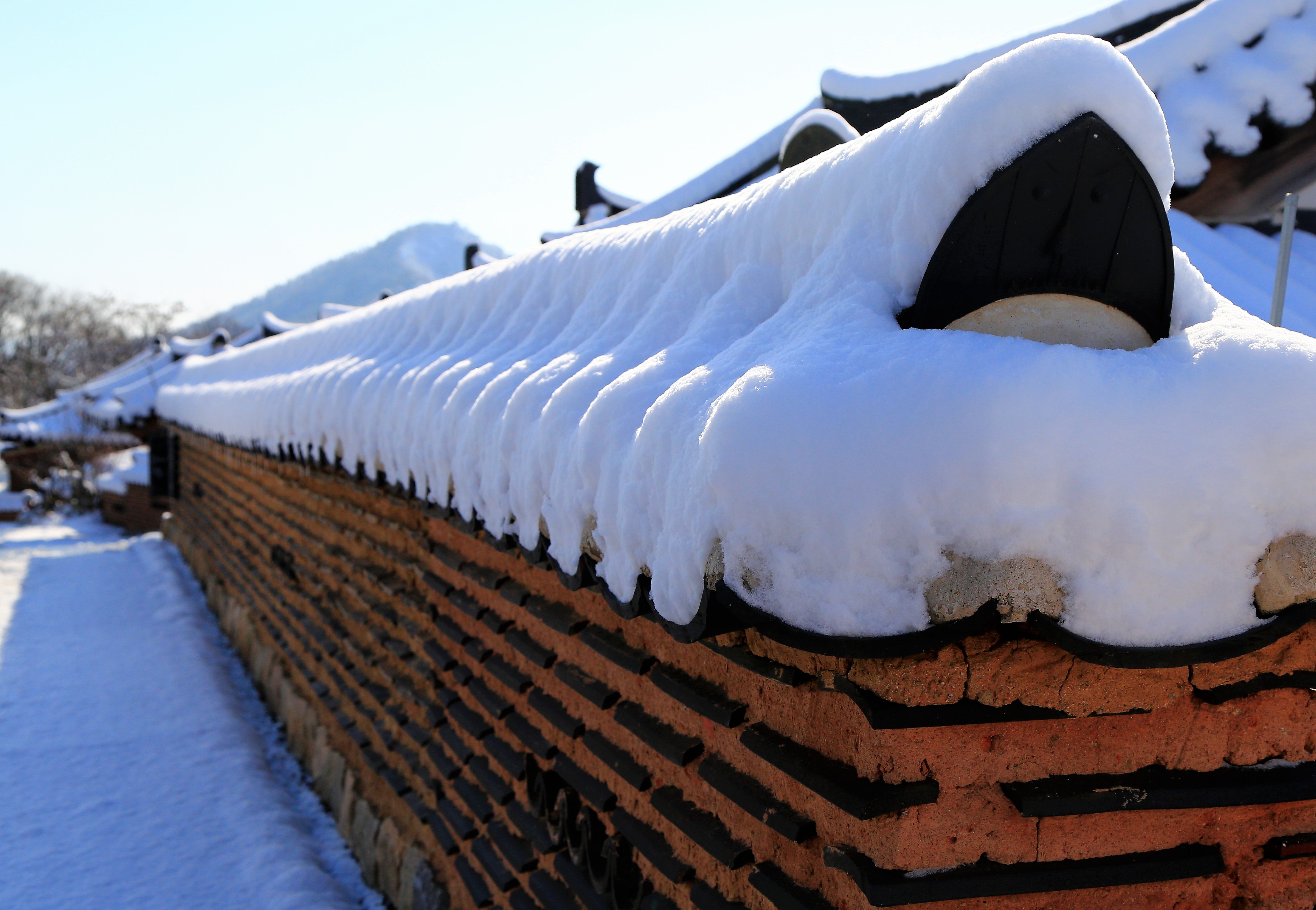 길은 돌담을 끼고 갑니다.