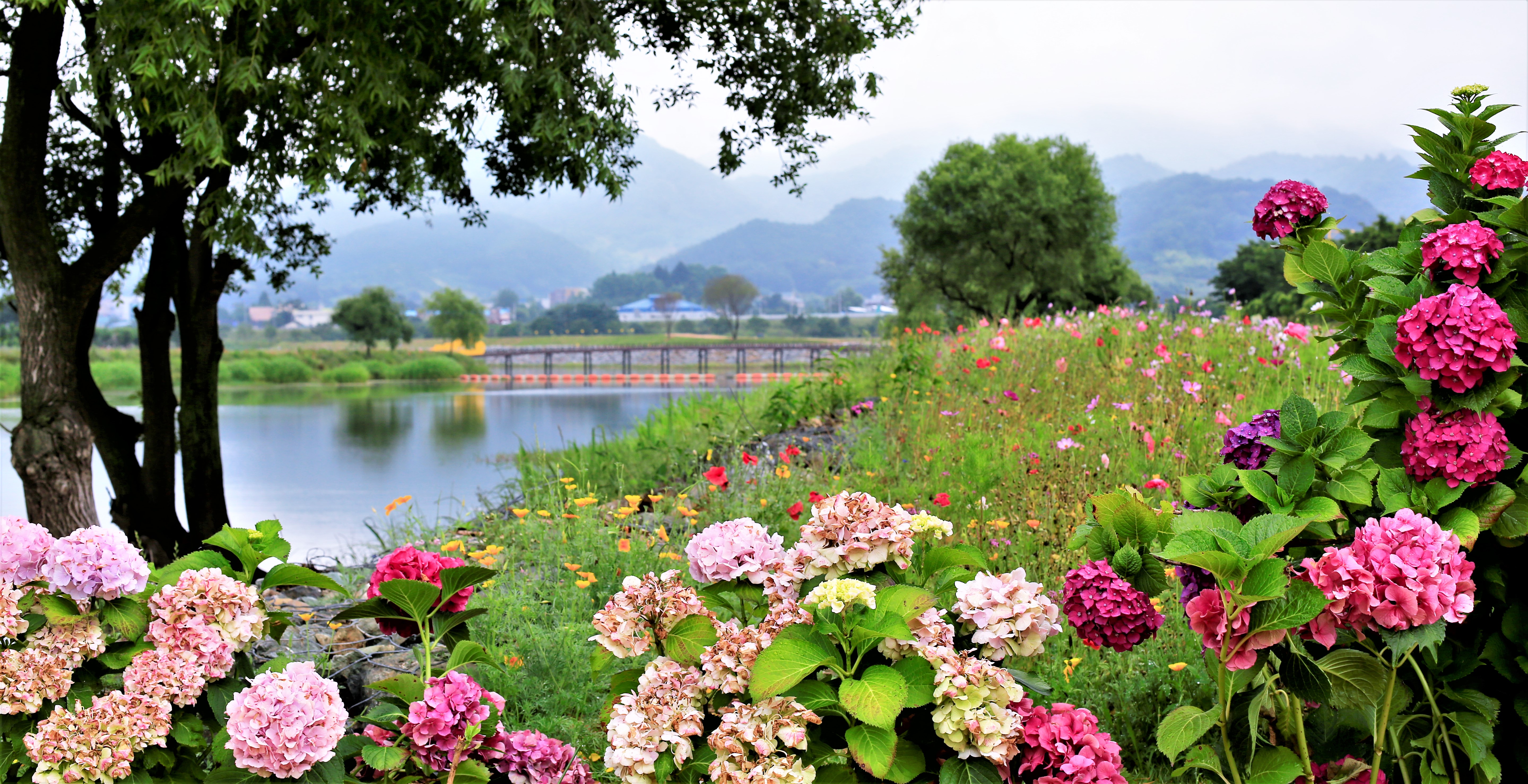 수국처럼 둥근 웃음