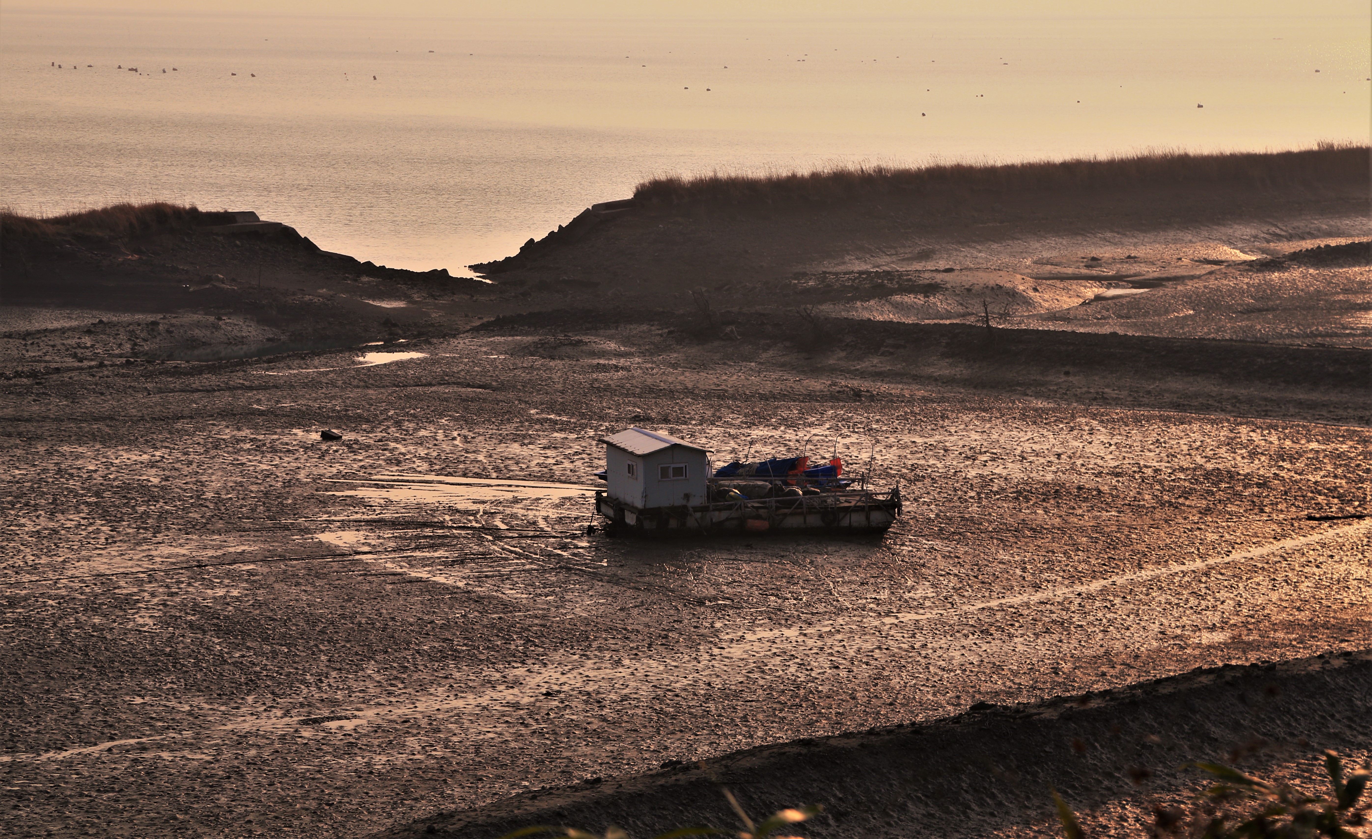 은빛 가물거리는 파도 너머 지는 노을 다시
