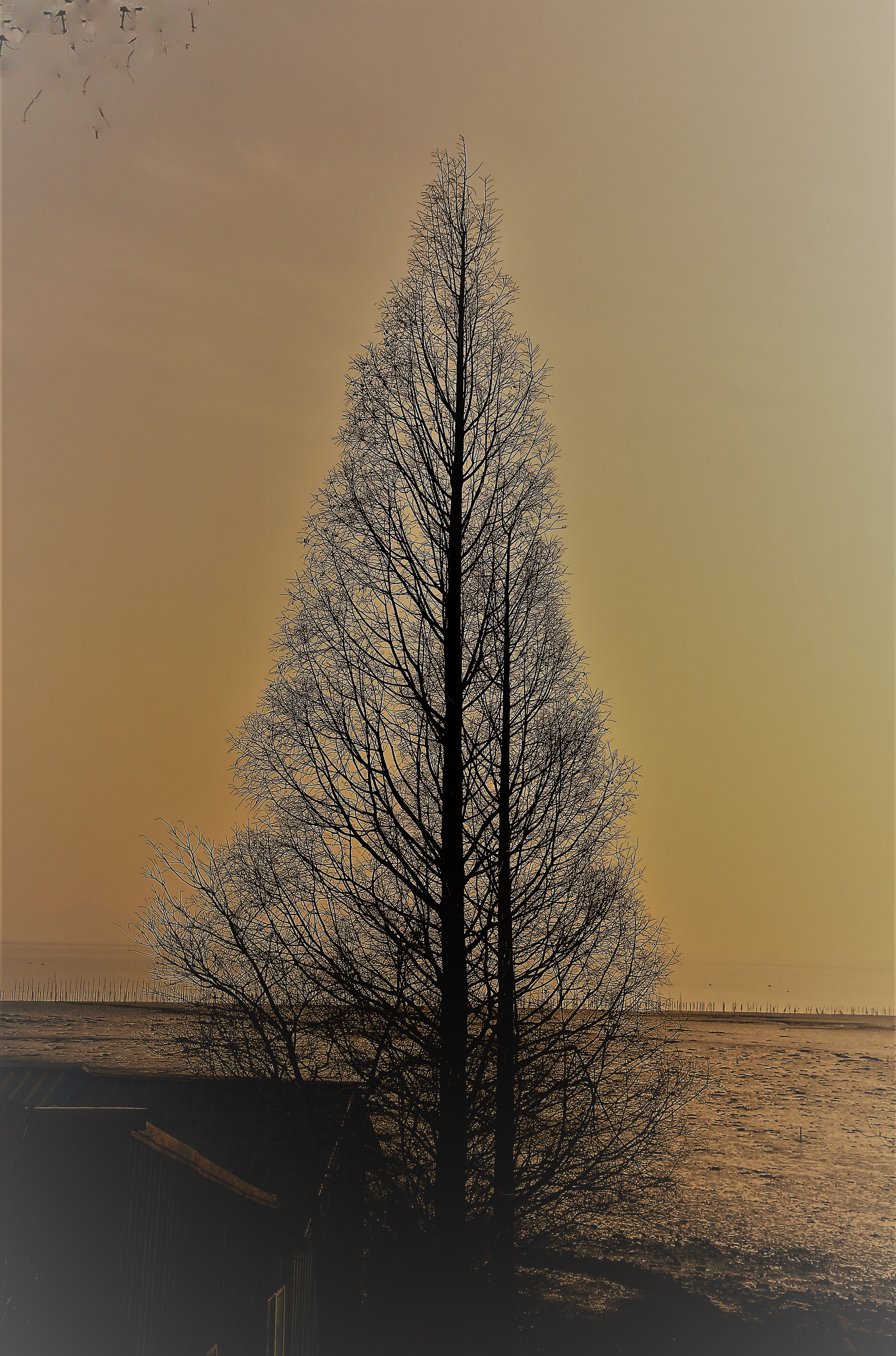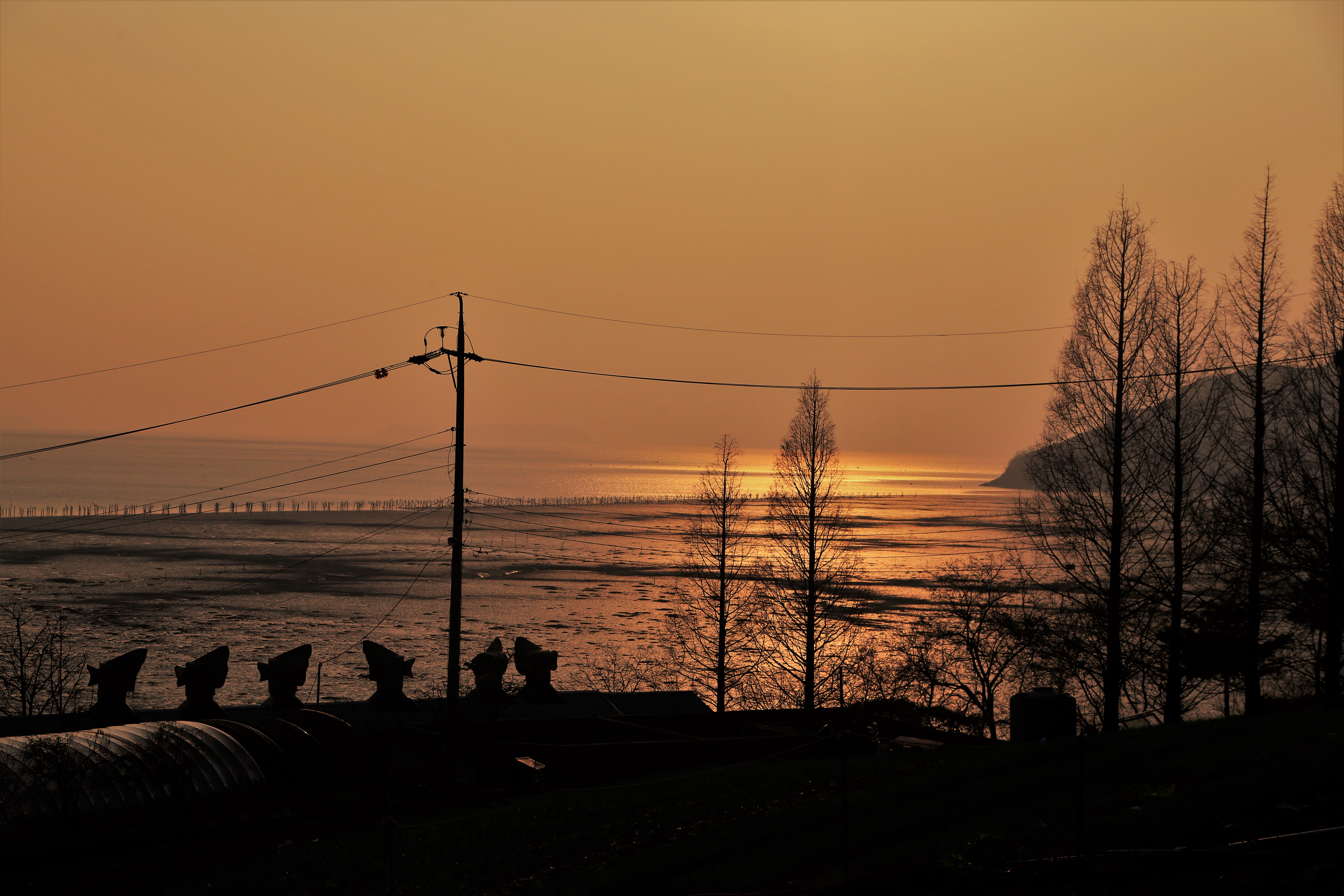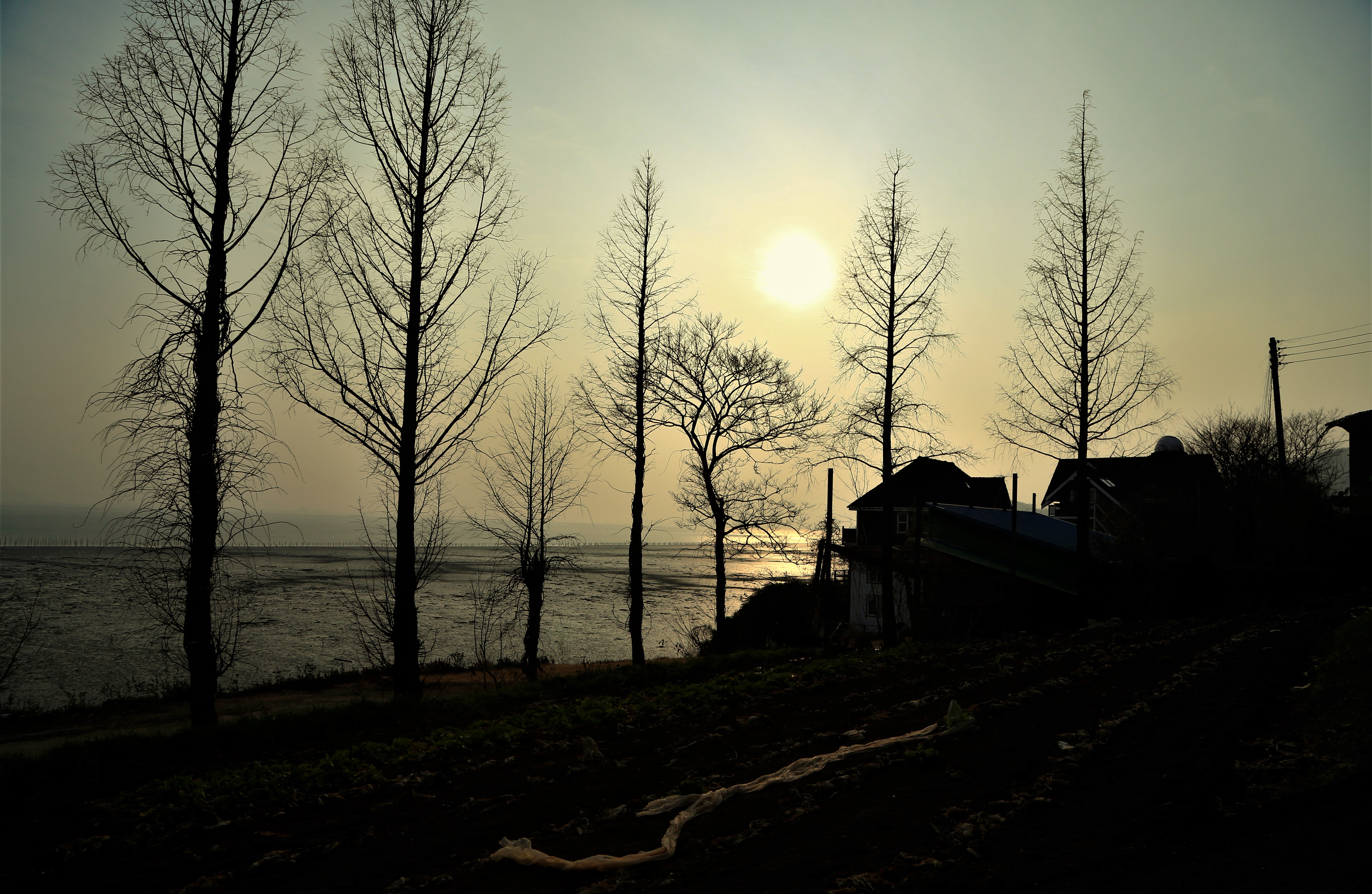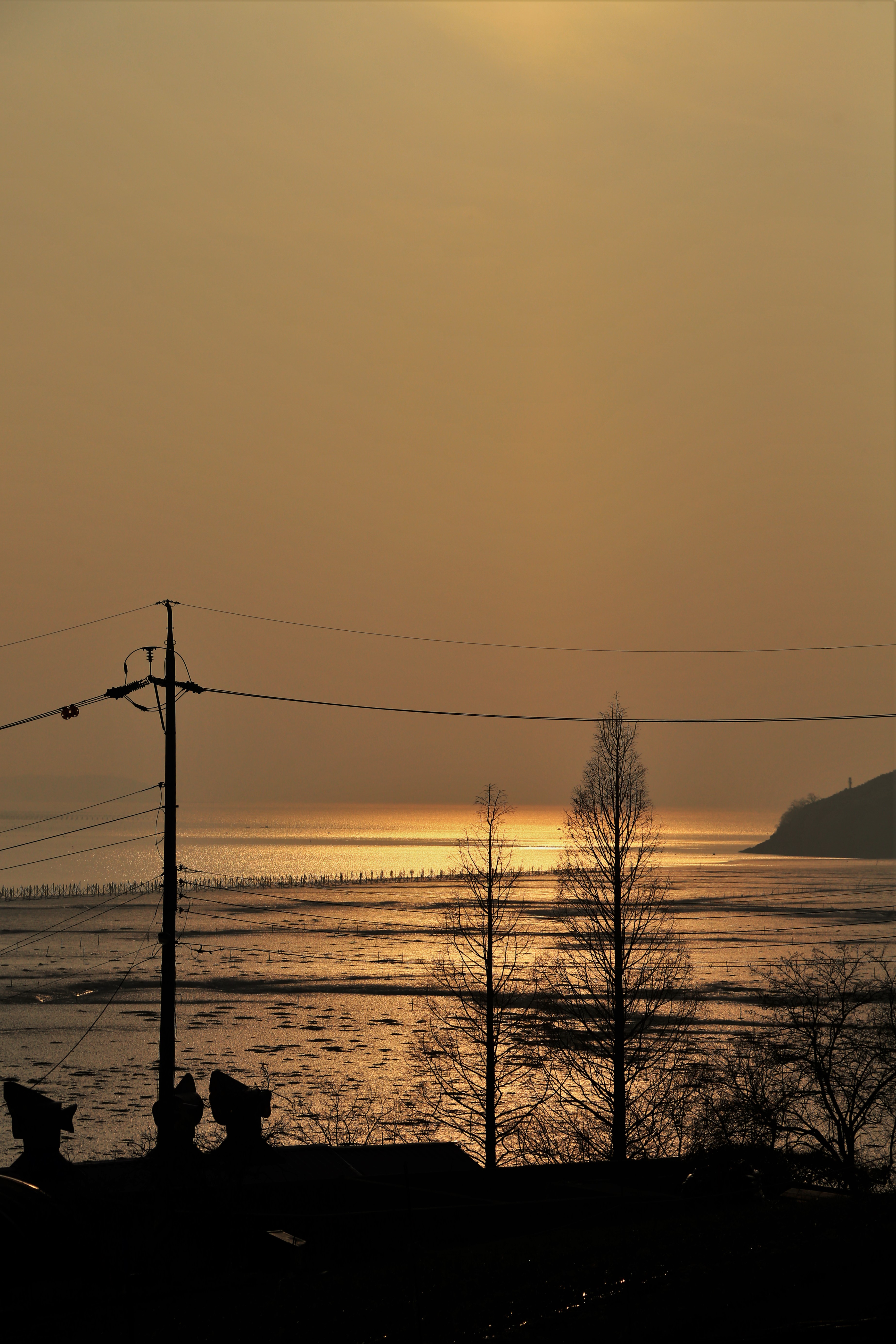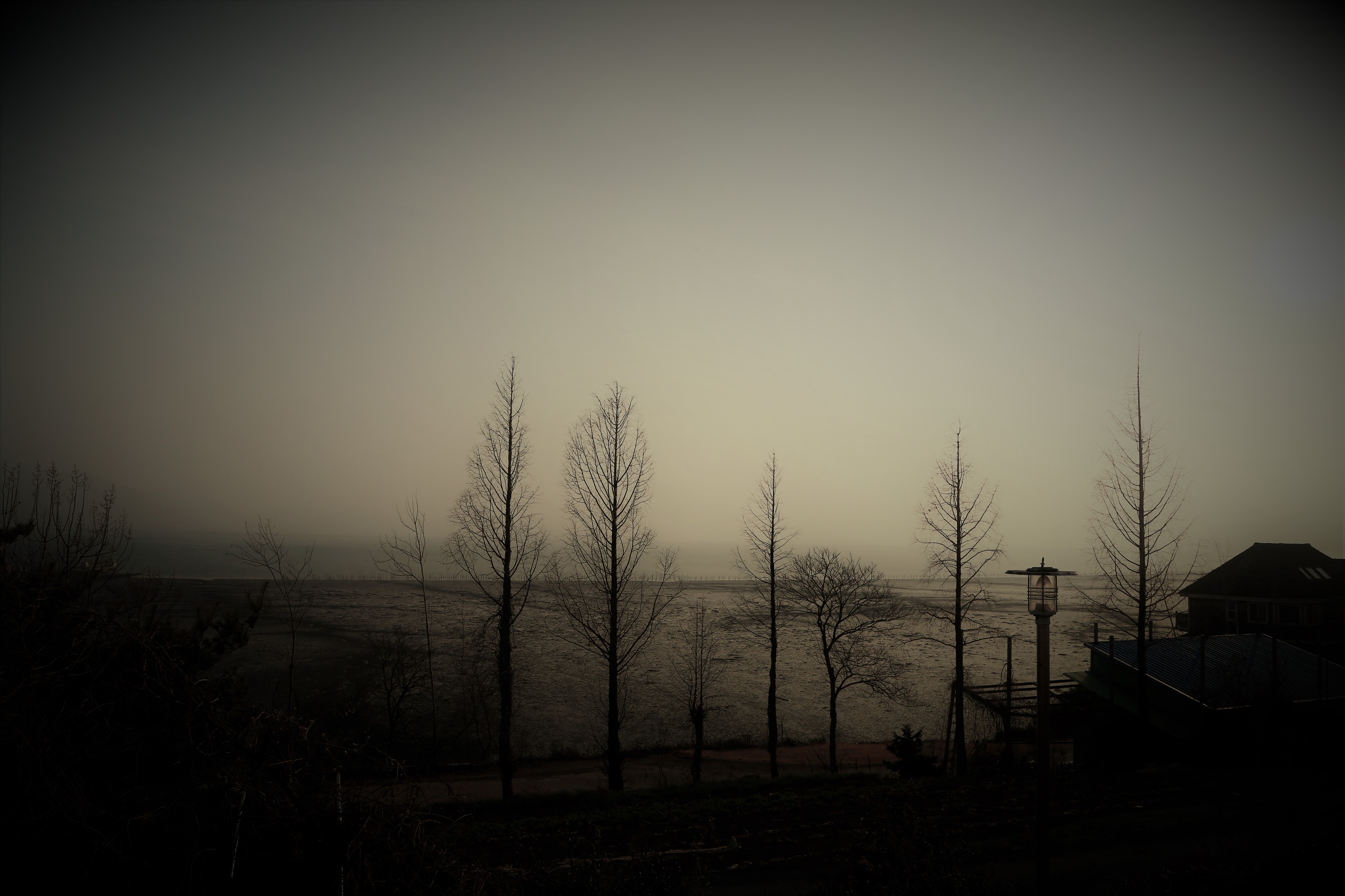 빨리 지는 겨울 저녁 해거름 속에